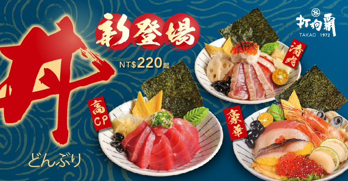 打狗霸即日起推出新品「丼飯三重奏」,本次共推出5款新丼飯,精選各種海鮮料理而成,每份220元起!